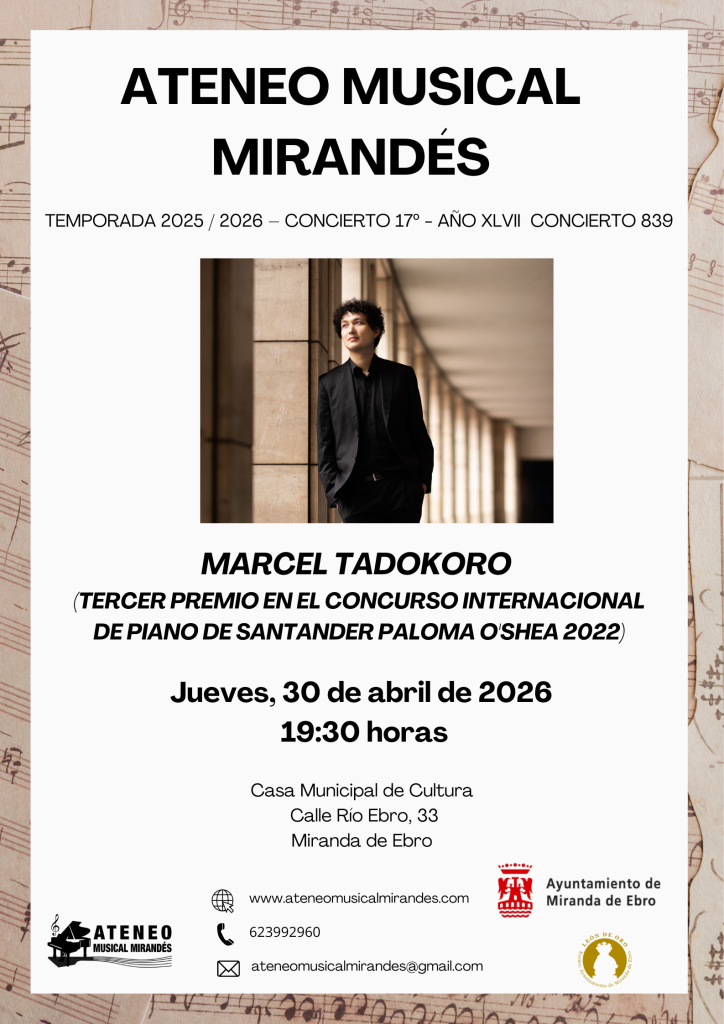Tercer finalista del «Concurso Internacional de Piano Paloma O’Shea» (piano)